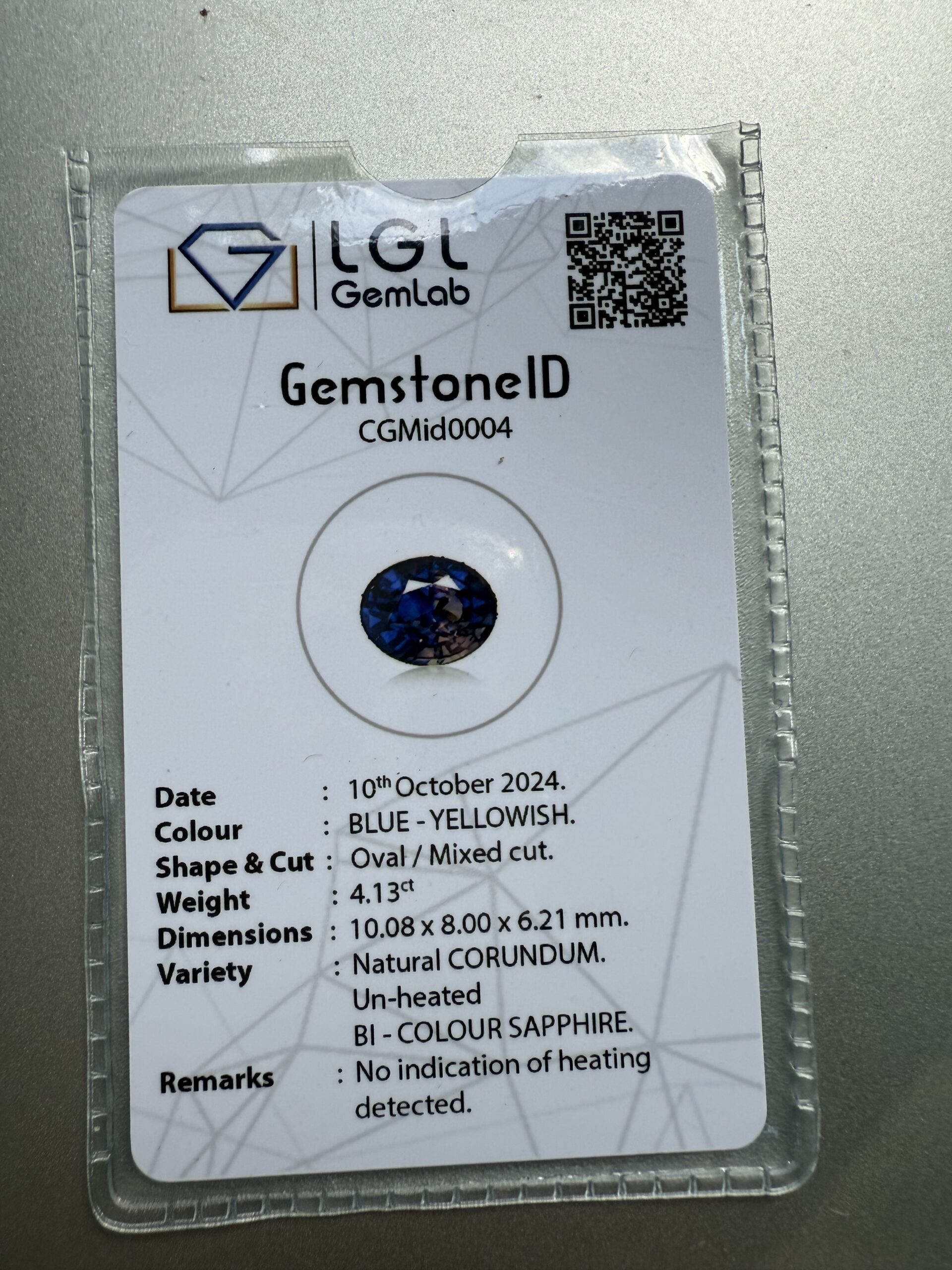 Home SAPPHIRE Unheated Bi Colour Sapphire 4.13 Ct