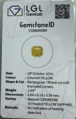 Home SAPPHIRE Unheated Yellow Sapphire Rectangular Shape with Truncated Corners- 2.35ct